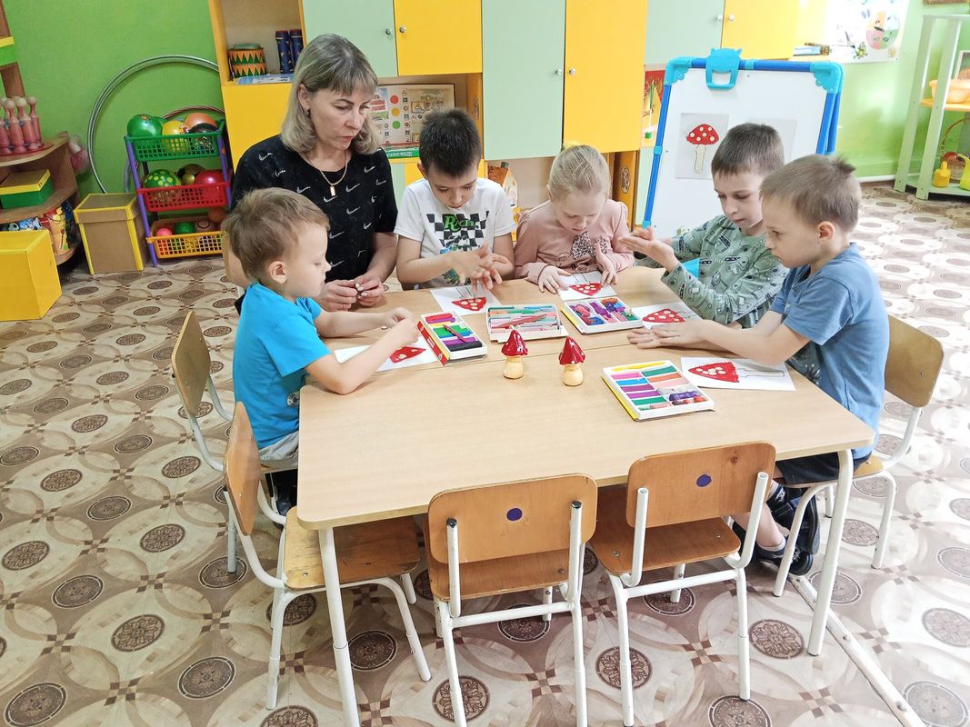 В продуктивной деятельности у каждого ребенка «вырос» свой гриб из пластилина. Дети получили яркие эмоции и хорошее настроение.