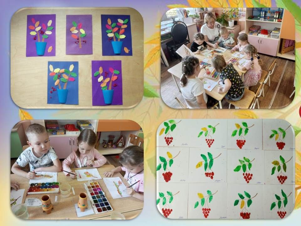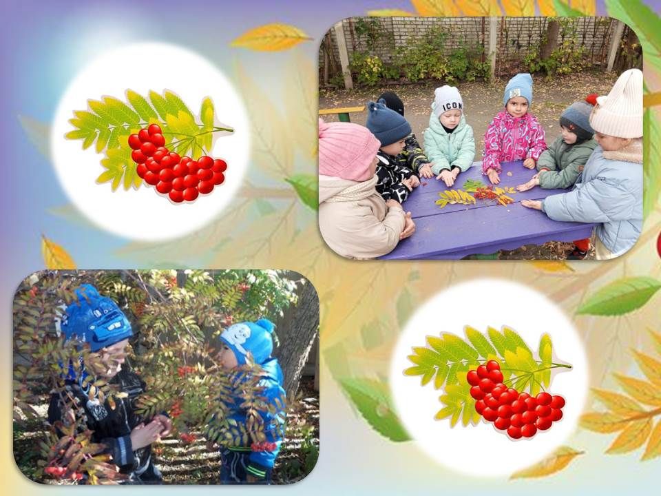 На занятиях «Время года – Осень» дети знакомились с осенними приметами, отгадывали загадки, читали художественные произведения и слушали русские народные песни о рябине. Наблюдали за рябиной на прогулке, рассматривали ее внешний вид; узнали о том, что рябина называют птичьим деревом, потому что ее плодами любят полакомиться птицы.