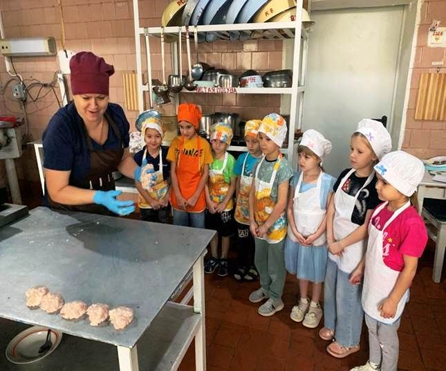 Воспитанники подготовительной группы «Подсолнушки» поздравили с профессиональным праздником поваров детского сада. Повар Анна Владимировна Фокеева рассказала и показала детям, какие кухонные предметы, машины и посуда используются для приготовления пищи, как обрабатывают и хранятся продукты. Восхищению детей не было предела: они увидели, как готовятся их любимые котлеты, как чистится картофель в специальной машине. Находясь на кухне, ребята задавали поварам много вопросов, интересовались как составляется меню, какие продукты сочетаются друг с другом и получили много новой информации.