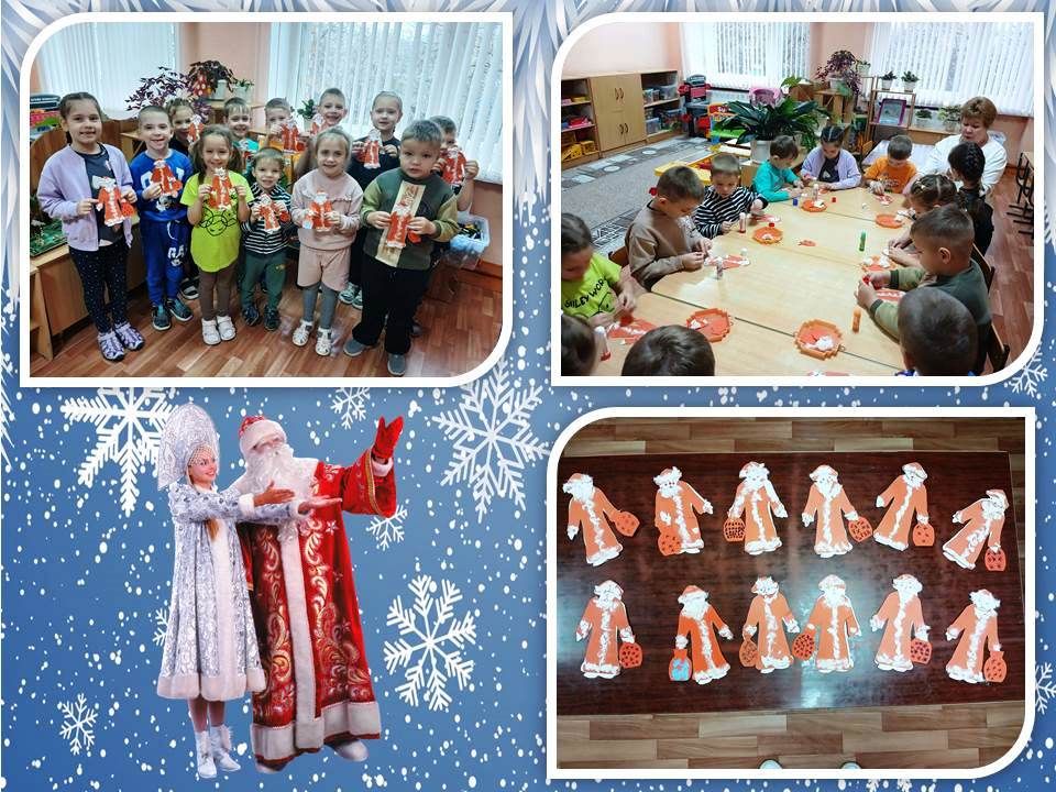 Воспитатель с детьми удовольствием водили хоровод для именинника, раскрашивали раскраски, писали ему письма. Ну и конечно - же, дошкольники приготовили Деду Морозу подарки, изобразили его портрет в аппликации и пригласили в детский сад на Новогодний праздник.