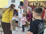 Чтобы ближе понять быт наших предков, дети носили на коромысле ведра, ставили ухватом чугунок в печь, гладили бельё деревянной рифленой доской, сидели за старинной прялкой.