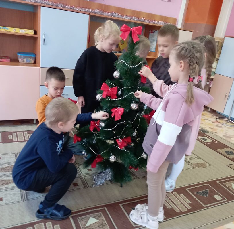 Совместными усилиями – педагоги и дети украсили пушистую красавицу в группе, тем самым, приближая такой долгожданный, веселый и волшебный праздник, как Новый Год.