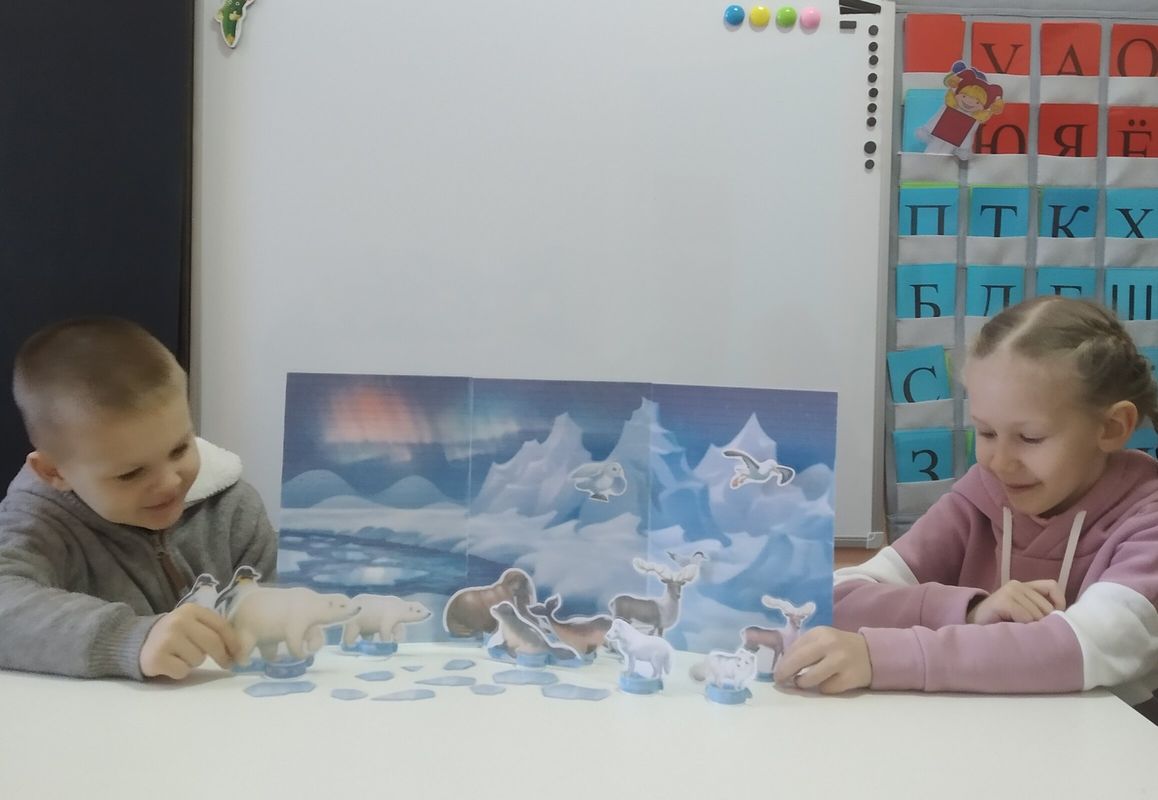 Февраль богат на праздники и знаменательные даты. В феврале отмечают День Северного оленя, белого медведя и день первооткрывателей Арктики. Обучающиеся группы «Земляничка» МБДОУ ДС № 37 в рамках тематической недели «Животные холодных стана» отправились на ледоколе в путешествие к Северному полюсу – самому холодному месту на планете. Здесь юные путешественники встретились с ледяными пейзажами, дикими обитателями и уникальными явлениями ледяной пустыни - айсбергами и северным сиянием. Узнали, что даже в океане, покрытом толстым слоем льда, живут особенные звери и птицы, которым не страшны сильные морозы, уточнили и систематизировали представления об их повадках, образе жизни. В ходе беседы, речевых игр и упражнений дети выделили основные особенности, отличающие обитателей Северного полюса. В процессе моделирования и обыгрывания модели «Жизнь обитателей севера» ребята упражнялись в образовании сложных прилагательных, притяжательных прилагательных, сравнительной степени прилагательных. При составлении описательных рассказов по предметным картинкам, сюжетного рассказа по серии картинок дошкольники тренировались в образовании и употреблении синонимов, антонимов, однородных членов предложения.