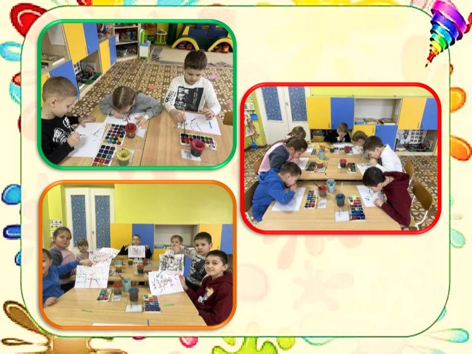 Дети группы « Подсолнушки» провели этот день весело и задорно. Они рисовали в технике «кляксография».