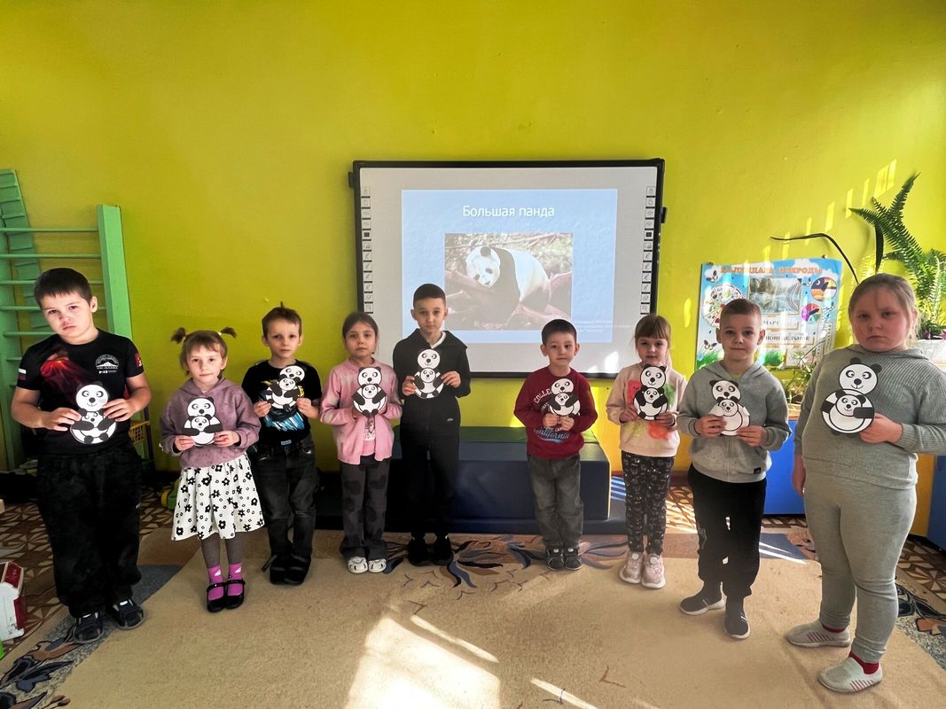 Дошкольникам было очень интересно узнать про этого загадочного зверя, о существовании которого они ранее даже не догадывались. Дети внимательно слушали рассказы о пандах, задавали вопросы, рассматривали красивые иллюстрации, играли в подвижные игры. Замечательным продолжением стала продуктивная деятельность – аппликация неваляшка «Панда с детёнышем». Все дети получили массу удовольствий и впечатлений от этого дня.