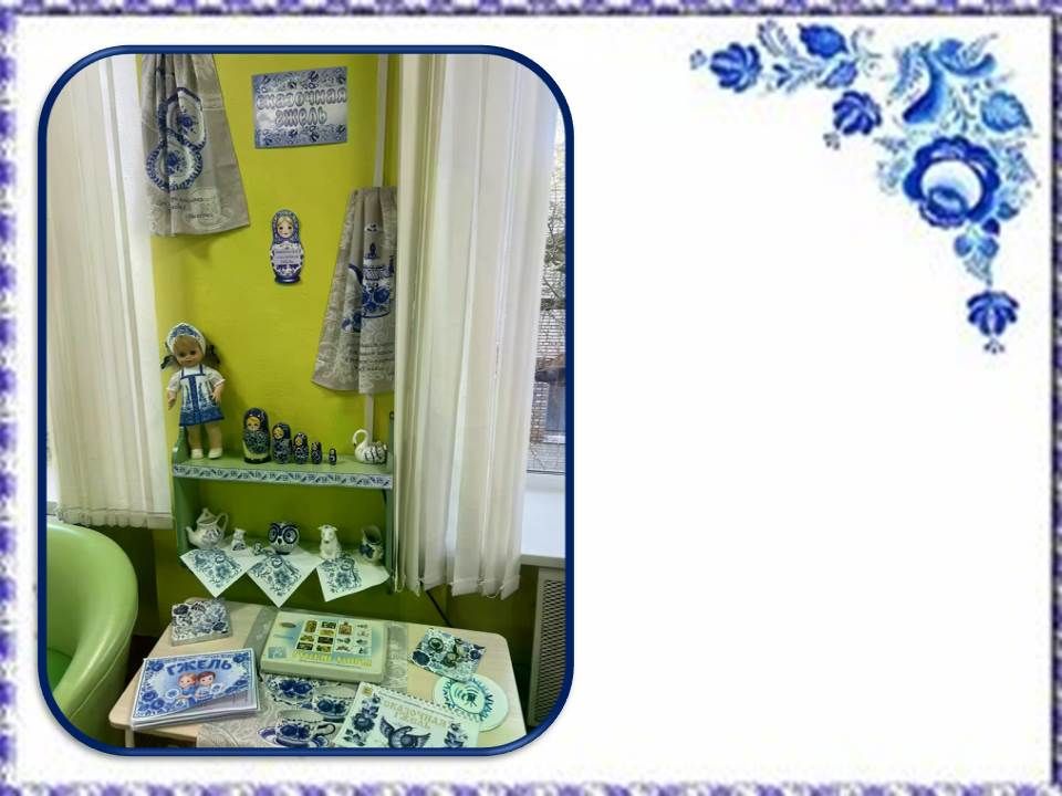 В группе «Подсолнушки» совместно с детьми и родителями был создан мини-музей народно–прикладного искусства «Сказочная гжель».
